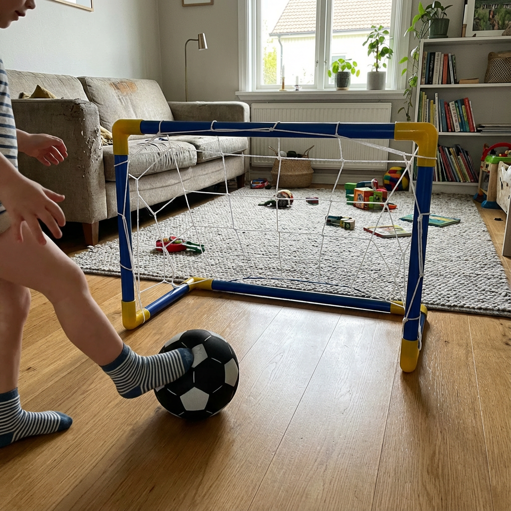 Nasza piłka została zaprojektowana z myślą o użytku w domu – przez co nie pobrudzi ona Waszych ścian ani nie zniszczy żadnych mebli!