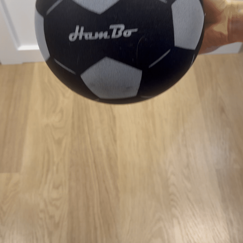 Nasza piłka została zaprojektowana z myślą o użytku w domu – przez co nie pobrudzi ona Waszych ścian ani nie zniszczy żadnych mebli!