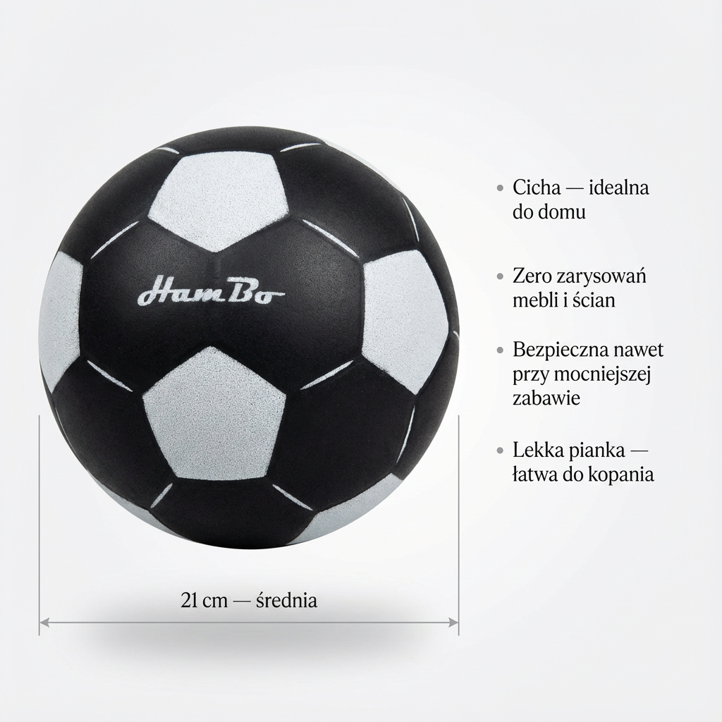 Tak — piłka jest rzeczywiście dość cicha, bo wykonana z miękkiej pianki, więc odbicia i upadki dają mały hałas.